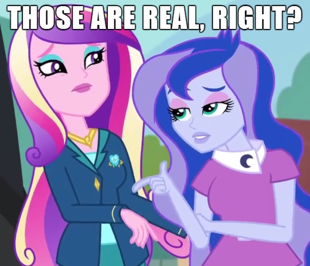 Cadance pinched the bridge of her nose. “You want to motorboat me,” she said flatly. She looked up and hissed, “We’re at school, Luna! We could be seen!”