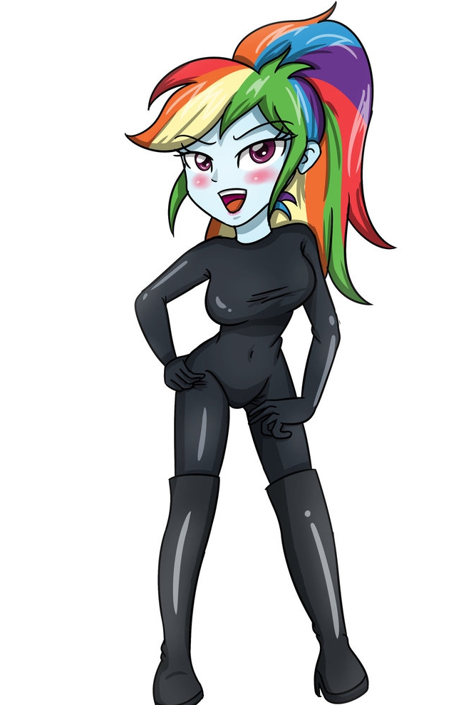 So Dash watched as well as she could from the corners of her eyes, staring down across her bare breasts towards her legs. She felt that the rubber was lubricated, quickly sliding up both legs at once. It was tight enough that she wondered if they had her measurements in advance. They stopped at her hips to adjust the many tubes and toys that ran through the area. The base of her tail, robbed of all the rainbow hair, was inserted into a small rubber pouch.