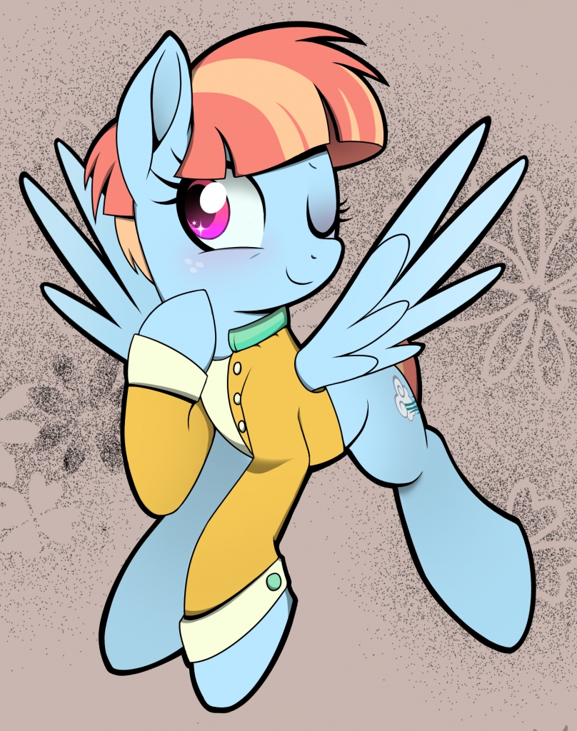 “Well, that’s good!” she chirps. “Still, I’m so sorry for dropping that on you at the last minute.” She fluffs up her wings, a look of embarrassment crossing her face. “I normally would have rescheduled the class, but my partner didn’t give me enough to time… so, yeah…” She trails off, rubbing the back of her head with a hoof.