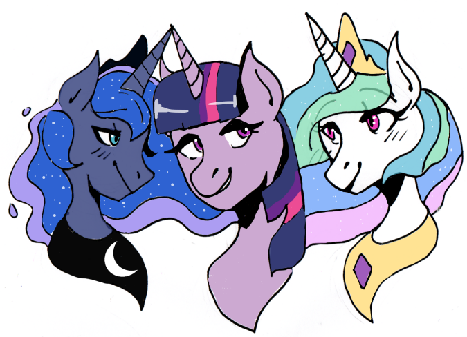 “Oh, it’s nothing, really.” Celestia lied with a soft and warm smile. Tilting her head, she saw Luna was feeling the same way. “Twilight, can you come here?”