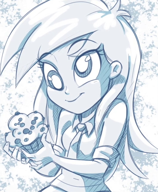 She handed him a plate, upon which was a large muffin, which caused Flash to raise an eyebrow. This, in turn, prompted Derpy to giggle slightly.