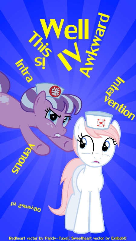 “Okay, we don’t have all night,” Redheart says. “Nursery, Sweetheart, go inside and try to give her an injection.”