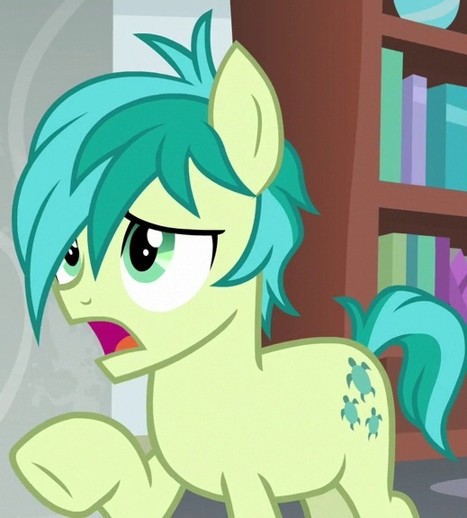 “Okay, this was a bad idea. This was a really, really bad idea! Why did I let Gallus talk me into this? Okay, Sandbar, pull yourself together. She’s right there. Just...just go over and talk to her. Who knows? Maybe things will go well? Oh, who am I kidding? Of course it won’t!”