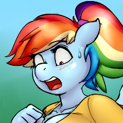 Dash’s heart skipped a beat as she looked down at the purple mare’s tightly packed bosoms, blushing and averting her eyes before she was caught ogling the goods. She could already feel a telltale stirring in her loins, the combination of exercise and a gorgeous female beginning wearing on her resolve. “You can’t do that,” Dash hissed, “it’s against the gym rules.”