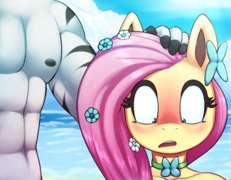 Fluttershy is the shyest mare in Ponyville, and nopony would ever expect her of being interested in the opposite sex, let alone have a coltfriend. Well, she not only has a coltfriend she has kept hidden, even from her friends; but he is a patient and kind Zebra that the mare is devoted to. After so long of dating in secret, the Zebra, Spiral wants to take his lover out to a day in private at the beach. But once there, and out of view of anypony, Fluttershy sees how “in love” her coltfriend is with her.