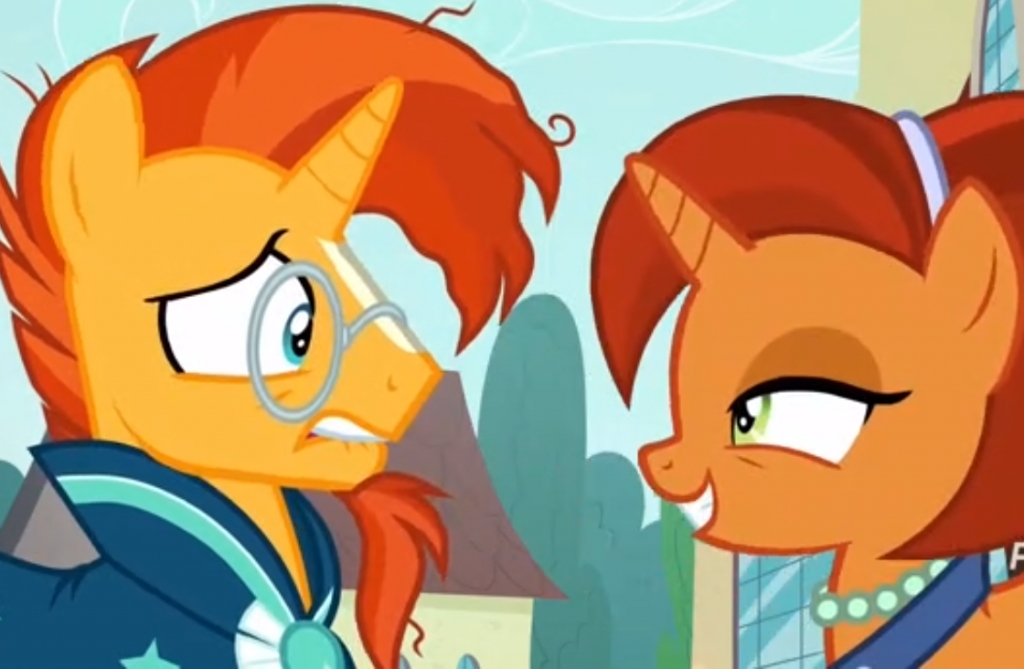 His mother, Stellar Flare, had been trying to turn their home town into Las Pegasus. The last time he was here, it was with his foalhood friend, Starlight Glimmer. Starlight's dad was on the other end of the spectrum, trying to preserve the entire town into some kind of living museum. The combined effort of Sunburst and Starlight helped them come to a reasonable compromise. Afterwards they reconciled their respective issues with their parents.