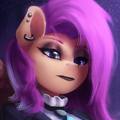 “Welcome to Rarity for You,” a voice called out, causing him to turn. A yellow pegasus slowly approached, adorned in a black button up top with a white poet shirt and a matching black dress. A leather band wrapped around her neck with a dangling grey gemstone set above her ample bosom. Her brightly colored coat was accentuated with dark eyeliner and eyeshadow and one ear was pierced with two studs above a small silver ring. Her mane and tail were a bright pastel pink, complimenting her yellow fur.