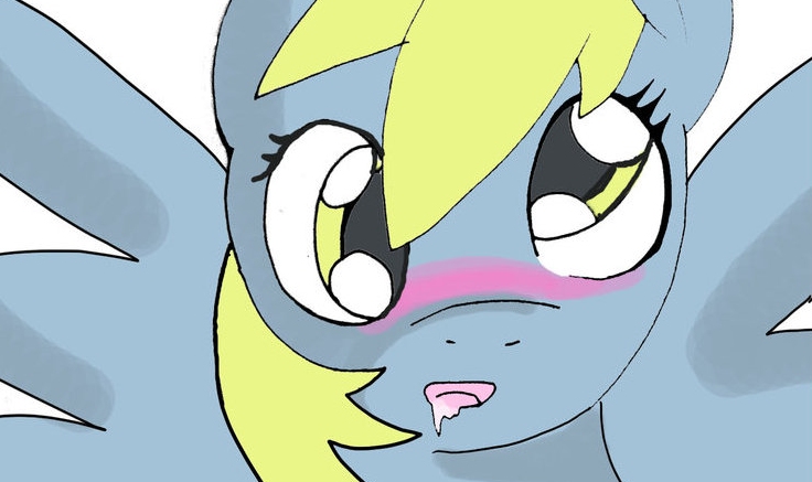 Derpy reached up and brought her fingers over the cock, jerking it with her hands and drumming her fingers against its balls. The cock swelled up, and Derpy thought for sure it was going to cum, and then it didn’t … for at least another minute, blowing the wad Derpy craved into her mouth and splattering everywhere, getting her cheeks wet with spunk after she had used her tongue to clean it up.
