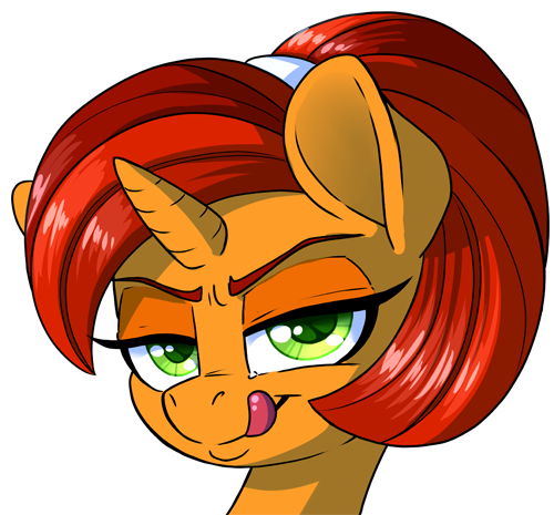 Chrysalis squirmed as the sensations flew to greater heights, the combination of the pony licking her sex while massaging and rubbing her legs and belly was astounding. The pleasure was wholly singular in magnitude and of a variety she’d never quite experienced before. All of her past experiences where stallions or mares had orally serviced her were utterly eclipsed by what this little orange pony was doing. Her respirations increased and a sublime heat began to culminate within her, the telltale signs of reaching her peak.