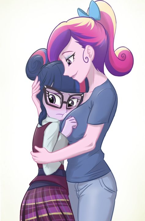 Her voice shook a little and she clutched Twilights face in a tight hug. The girl’s nose nestling snugly into her cleavage, not really minding that she couldn’t breathe.