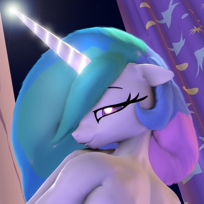 Celestia, alicorn demigod and princess of the sun, walked out from the steamy bathroom. Eyes closed, she toweled off her ethereal mane, inexplicably drying it’s non-corporeal, shimmering essence. The dim light of the poorly lit hotel room bathed over her nude form. She was in many senses, a goddess. Her curvaceous body, from neatly pedicured toes to ample, heaving bosoms, was, by many standards, perfect. Alabaster fur covered nearly every inch of her frame, save for a few select places. Sparkling, mauve eyes peered out, inspecting the area, as the princess strode forth. Under normal circumstances, a dingy hotel would be no place to find royalty, yet here she was. Strutting over to the bed, her breasts swaying and pillowy ass jiggling ever so slightly, the alicorn seated herself on the mattress. Laying back, she sighed, one impeccably manicured hand gliding over her massive tits, down her soft abdomen, and to supple mound of flesh that was her marehood. She bit her lip, feeling her fingers graze the tender entrance at her loins, as she began to casually pleasure herself. The action was done with a certain amount of banal blasé, almost as if Celestia were waiting for something, or someone.