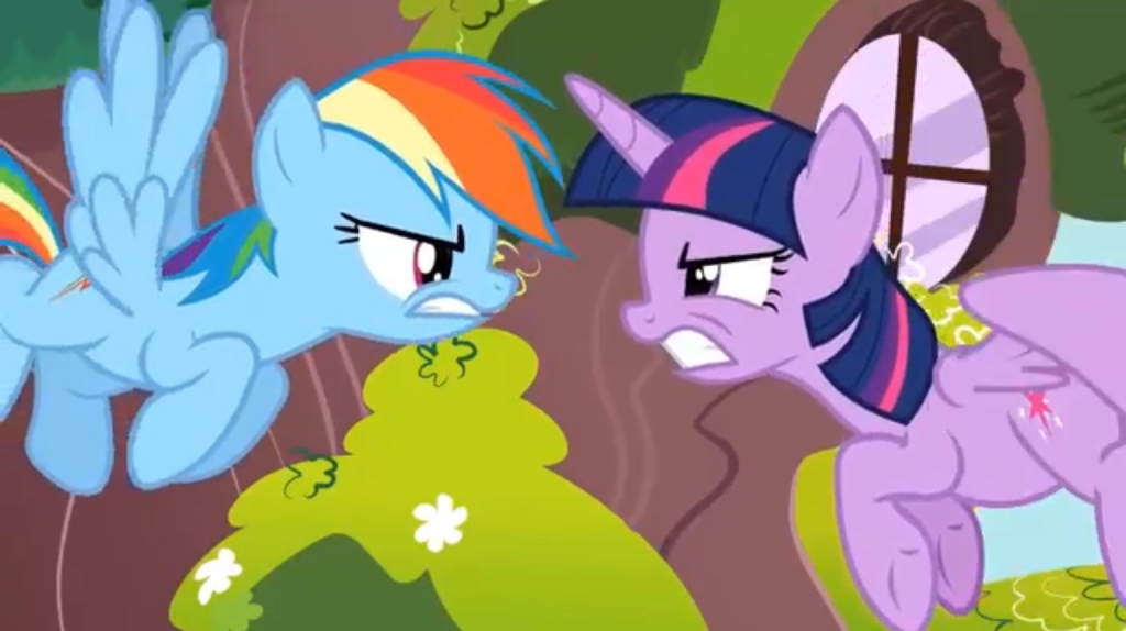 For a moment the cyan pegasus just stared at her friend in shock. Then she started to feel her own anger come bubbling to the surface. Rainbow’s quick temper flared at the unjust accusations and she returned Twilight’s hateful glare with one of her own.