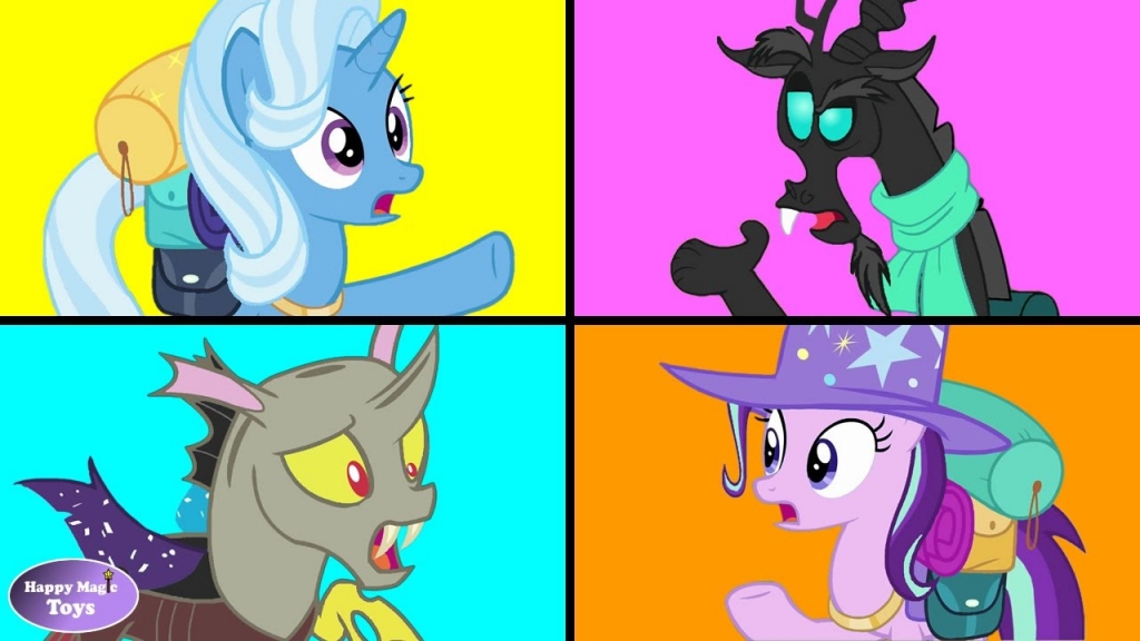 Oh...This Isn't Good.View OnlineMassive Magical MishapOh...This Isn't Good."Remind me again why I agreed to participate in such a small magic show?" Discord said, frowning at Trixie. "Because its magic." Trixie said. "And you said you could use a little bit of your magic to switch things up for us. The Great and Powerful Trixie needs some new acts. Hers are getting...old." "If by old you mean incredibly boring to the point one desires to remove their own eyeballs, then yes. It's old." Discord said, removing his eyes and juggling them momentarily before popping them back into place. Trixie glared up at him. "If Trixie did not need you for the show," she said angrily, "she would turn you into nail and beat you into the wall of a solid brick house with a sledgehammer." "What, to really...drive the point home?" Discord joked with a smirk. "Trixie hates you right now." The magician growled. Discord chuckled. "Ok, ok, break it up, you two!" Starlight interrupted. "As entertaining as this is, we've got to practice for the show. We have two days, and we're not ready." "Oh, please! Trixie is always ready!" Trixie said. "Well...except for the rare times she isn't..." "Do you have any idea how ridiculous that sounds?" Discord asked. Trixie glared at him. "I'm here!" Thorax dropped lightly to the ground alongside Starlight. He looked at the other two, then back to the mare beside him. "Am I late? What did I miss?" "Nothing much." Starlight said, rolling her eyes. "Just these two going at each other...again." Thorax laughed. "Well, I'm ready to practice." He said. "This will be fun! I've never been in a magic show before." That got Trixie's attention. "Never?!" She said. "Well, then. You're in for a treat! The Great and Powerful Trixie's Magic Show is the best in Equestria!" "That is quite debatable." Discord stated. Trixie glared at him again. "One more jab, Discord, just one..." she fumed. "And Trixie will...will...drop a drumset on your head!!" It was the first thing that had come to mind. Discord grinned deviously and leaned close to her. Starlight, instantly recognising the opening Trixie had given Discord without meaning to, groaned. "Oh no..." "So..." Discord smirked. "You'll really...drop the beat? Hmm?" Starlight facehoofed. "Sweet Celestia!" Trixie groaned. "Make him stop!" "You asked for that, Boss." Discord said, chuckling. Trixie glowered. "Enough!" She snapped. "Less talking, more working! This show won't run itself!" She led her small troupe through various routines and excercises. The three were quick learners and (sort of)willing pupils. After over an hour, Trixie called a halt and faced them. "Alright." She said. "Trixie wishes to try something very new in her show. So for our final act, we will be doing what Trixie, with Starlight's help, calls the Great and Powerful Personality Switch. Starlight?" The other unicorn coughed. "I have created a spell that will cause an illusion that makes us look like we've switched personalities and bodies...only we won't really. We'll each just act like the pony, or chsngeling, or draconequis, we look like to the audience. In other words, I'll cast the spell and I may look like Discord, which means Discord will look like me...but the change is only visual. Sort of like, well, what Thorax can do when he takes on the looks of any pony he wants to. Get it? Then, for this example, I would act like Discord, and he would act like me." Thorax and Discord stared blankly at them for a moment before that all sank in and they both suddenly grinned and nodded. "This is only an illusion." Trixie said. "And will only last up to about five minutes. But we need to practice now before the actual show, so we know what to do and are comfortable assuming each others' characters. Starlight?" Starlight lit her horn, and all four of them glowed. She grunted as a small pain poked at her head. "I think...I got it...just..." BOOOOOOM!!!!!!!! The massive explosion of magic sent the group flying in different directions. Once the smoke and fog cleared, Starlight groaned. "That wasn't supposed to happen. I must have...GAAAAAAH!" She ended on a screech. The four of them had picked themselves up, dazed, and now stood gaping at one another. "Starlight!!" Trixie yelled. "You...you...how...?" The spell had backfired spectacularly. They had all literally switched bodies. And colors. Starlight was in Trixie's, Trixie was in Starlight's, and Thorax and Discord were in each other's. Discord eyed his colorful changeling body and huffed. Thorax eyed his large, black draconequis body and blinked. Starlight eyed her pink body with Trixie's cutie marks and rolled her eyes. Trixie stood slackjawed, looking at her blue body with Starlight's cutie marks. "What did you do???!" Trixie yelled. "We switched bodies and colors and...WHAT DID YOU DO??!" "I don't know!" Starlight cried. "This wasn't supposed to happen!!! I worked carefully on this spell!!!" "Well not carefully enough, obviously!!" Trixie shouted angrily. "We're not...us!!!" "Do you know what this means?" Discord asked, smirking. The others glared at the draconequis...er....changeling. Uh, drancone-changeling? "This spells disaster!" He barely avoided the magic lamp Trixie flung at him. "Switch us back!!" Trixie yelled at Starlight. "I don't know if I can!" Starlight said. "First of all, I don't think I have a spell for this, and secondly, you are in my body, which means you have control of my magic and I have control of yours!" As soon as she said it, she froze. 'Oh celestia...that's not good...' "Think of something!" Trixie shouted. Then she blinked. "Wait... Trixie now has your magic?" She grinned. "Trixie, don't even think about...whatever it is you're thinking about!" Starlight warned. "My magical abilities surpass some of Twilight's...it isn't something to play around with. You could hurt yourself." "Oh please! The Great and Powerful Trixie laughs in the face of pain!" Trixie retorted, before her horn lit up. "Trixie, don't do tha