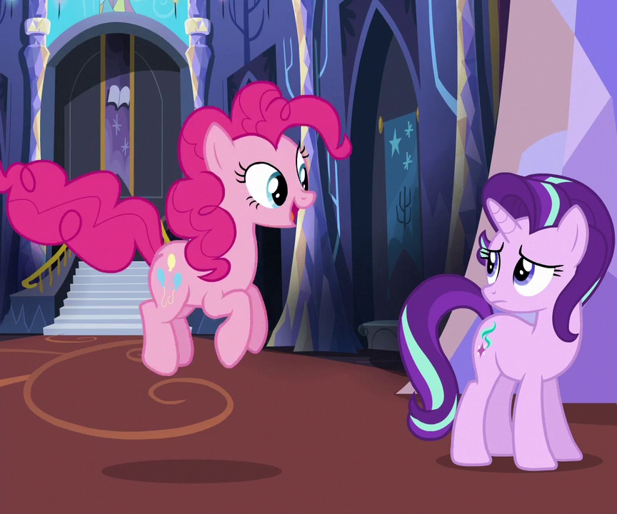 On a quest with Pinkie?View OnlineFriendship Solving Trip with Pinkie. Yay.On a quest with Pinkie?"I'm called to do WHAT?!" Starlight stood frozen, staring at Twilight with her jaw hanging open in shock. Twilight chuckled. "You're being called here...to Manehattan." She pointed at the map, particularly the part where two cutie marks were circling. Starlight shook her head. "Yes, I see that...but...but..." she broke off, struggling. "Is there a problem?" Twilight asked. "Well, of course! Why else would the map call me!" Twilight giggled. "No. I meant with where you're going." "Not really, no." "Then what's wrong?" "My traveling companion is what's wrong!!" "Um, why?" Starlight gestured wildly with a hoof, sputtering. "Why...because I...it...she...there's...ugh!" She took a deep breath. "Don't get me wrong, Twilight. I love Pinkie Pie, I do. But...but traveling with her all the way to Manehattan on a friendship quest??? Just the two of us??? I'll...I'll go crazy!!" Twilight grinned. "Well, I'll admit she's quite alot to deal with, Starlight, but honestly, what other pony would be better company for you on this trip than Pinkie?" "Oh, gee, I don't know...Discord? A manticore? A dragon? A completely harmless flowerpot that can't talk incessantly?" Starlight said flatly. Twilight rolled her eyes. "It'll be fine." She said. "Look, the map called both you and Pinkie Pie for a reason." "Maybe it made a mistake." "You know very well it doesn't, Starlight." "How do you know?!" "Because it doesn't work that way!" "Well, why not?! Maybe it meant to call Discord or something!" "It wouldn't do that! And Discord doesn't even have a cutie mark!!" "Well neither does Spike, and it called him!" Twilight blinked. "Good point." She sighed. "Starlight, it isn't going to kill you to spend a day or two, or three, with Pinkie Pie." "I wouldn't bet on that." Starlight said stubbornly. Twilight rubbed her head alongside her horn. She was starting to develope a headache. "Look, like I said, you'll be fine." She said. "And you'll get to know Pinkie Pie better!" "I know Pinkie Pie well enough now!" Starlight insisted. "Twilight, can't you change this?? Send Rainbow Dash with me? Or Applejack? Even Fluttershy! I don't care, I'm not picky! But please....I am begging you...do not make me go with Pinkie Pie!!" "Did somepony say my name???" Pinkie Pie exclaimed as she bounced into the room. "Hey, Twilight! So, Starlight, did ya hear?? We're going on a friendship quest together! Isn't it so cool! Well, isn't it? Huh? Oh, this will be so much fun!!! I can't wait! I packed cupcakes for the trip!" As Pinkie prattled on, Starlight moved closer to Twilight. "Please. Do something." Twilight sighed. "Starlight, the map called you two. You and Pinkie. I can't change that. So go on and get going. And try to enjoy yourself." Starlight gave her a look of despair, prompting a grin from the purple princess. "Come on, StarGlim! Let's get going!" Pinkie said excitedly. "I can't wait to get started! And we're going to Manehattan!!! Its so cool there! We are gonna have so much fun, and maybe we can solve the friendship problem fast and then go exploring and do some really cool and fun stuff! Ooh, they have all kinds of good food, too!" Starlight groaned as she was dragged from the room by the pink pony, who kept on talking a mile a minute. 'And so it begins.' She thought. 'Celestia save me. I'm gonna lose my sanity before we even leave Ponyville!' Pinkie just chattered on, oblivious to the fact her companion wasn't even listening. ********************************** Starlight managed distract herself from Pinkie's talking until they were on the train leaving Ponyville. Pinkie finally paused for breath, and Starlight took the opportunity to speak herself. "Pinkie, do you want to play a game?" "Ooh, I love games! Guess that Tune?" "Uh, no. I was thinking-" "Who can hold their breath the longest??" "No. I was-" "How about What Pony Said It??" "No!" Starlight's shout got the attention of everypony on the train car. She took a breath. "No. Actually, I was thinking one of my favourites. Its called How Long Can You Not Talk?" Pinkie thought. "Hmm...I don't know, but I guess we can find out!" She clamped her mouth shut. Starlight sighed, glad to be free of the persistant chatter. She looked out the window at the passing scenery, absorbed in thoughts of the friendship problem they were going to solve. Perhaps somepony had gotten mad over mud on their clothes and was now feuding over it with the friend responsible. She shook her head. No. That was just silly. But then again, maybe not... A humming noise broke her out of her ponderings. Pinkie was staring at her, blue eyes sparkling, humming any and every tune she could think of. And throwing in ocassional whistles. Finally, Starliggt snapped. "Pinkie, will you stop?!" Pinkie grinned. "Ha! I win! I win!!" She giggled. "Wait, what?? No! You weren't being quiet! I said..." "You said 'how long can you go without talking'...not 'how long can you go with zero noise at all'. And I won!!!" Starlight silently cursed herself and her unclear rules. Pinkie Pie was now off on another rapid trail of speech, and Starlight could only sigh heavily as she slumped in her seat and tried to follow the numerous rabbit trails without encountering a massive headache. But just as suddenly as she'd started, Pinkie stopped talking and focused intensely on her companion. "What?" Starlight finally said, uncomfortable. "Can I ask you a question?" "I...guess so?" "I asked Twilight once, but...well, what do you think the meaning of life is?" Starlight blinked. "Uh...I...don't know?" "That's what Twilight said!" Pinkie giggled. "Well, yeah...I don't know of anypony who knows that." "But life has meaning?" "Of course it does!" "Okie dokie lokie! Just asking! Hey, do you suppose maybe somepony stole another pony's fashion line or something and the other pony is mad because they were friends and now they're fighting??" Starlight was ge
