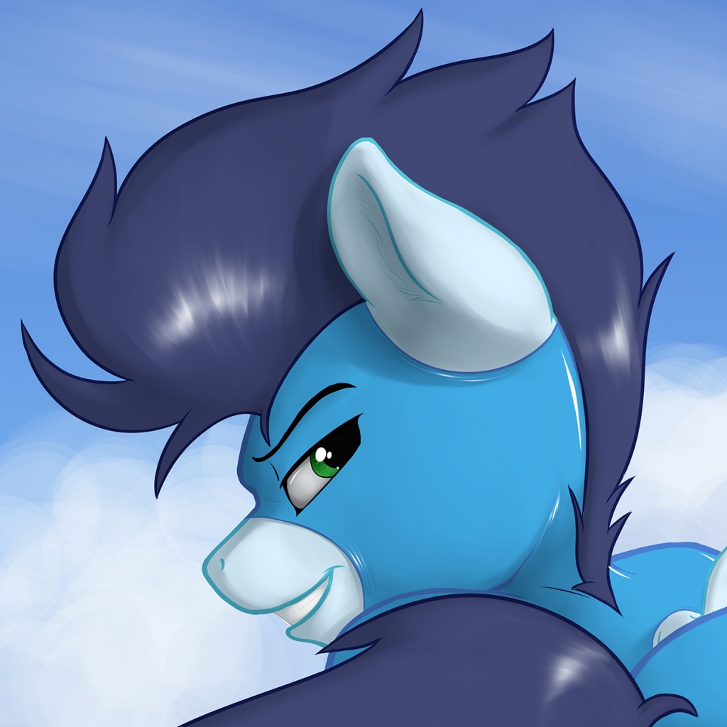 “You smell really nice,” Copper cooed, softly rubbing his muzzle across the imprint of the pegasus’s meaty equipment. His sinuses were flooded with the thick, pungent musk of the larger pony, even through the fabric. A shiver went down the colt’s spine as he imagined just how intoxicating the aroma would be once the suit was fully removed. It wasn’t hard for him to tell the Wonderbolt was beginning to get excited, as Soarin’s stallionhood steadily become turgid under the uniform.