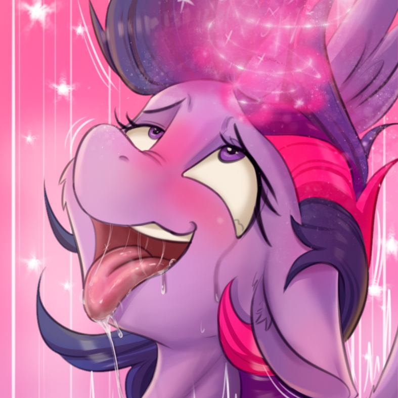 Twilight gritted her teeth, as a nova of concentrated euphoria and unfettered bliss overwhelmed her system. A cataclysmic overload of ecstasy drowned out her world, leaving her a gibbering mess. Her body, acting of its own accord, flipped her table and sent paperwork flying about the room. Sparks and bolts of unrefined energy blazed from her horn, igniting the drapery and dried portions of the carpet. From her loins erupted a torrent of nectar, unseen since Celestia’s wild nights as a lithe and svelte youth in the Sister’s old castle. Like some debased eldritch horror, the Twilight’s full, carnal fury was unleashed. The students screamed, scrambling about in a mad panic at the unprovoked outburst of power. There she sat, braying like some hedonistic god of old, cumming ferociously, and bellowing to the heavens. It was a scene of utter chaos, one which would even make Discord blush in envy.