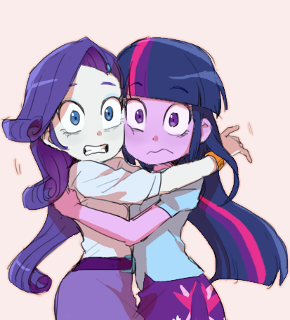 Rarity held Twilight’s face and wrapped her feet behind Twilight’s legs.