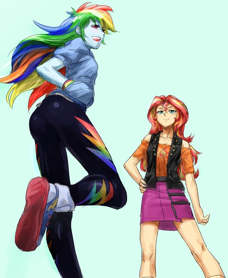 Rainbow has been feeling on edge lately and Sunset wants to cheer her up, so she offers to help take her mind off of things with some casual sex. Rainbow, it turns out, is a bit more boyish and callow than she'd expected, which only serves to make it even more appealing to Sunset.