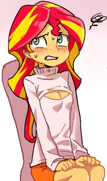 This made Twilight feel more sure of herself but she still waited for Sunset to start. Sunset, however, hesitated with her hands gripping the hem of her shirt. She noticed that she’d spoken a bit of truth. She was embarrassed to be seen by Twilight and she wasn’t sure why. She’d never hesitated when showing herself to a boy.