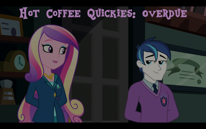 At the end of the school week, there was always a brief meeting between the Crystal Prep Alumnus Society to chat about recent events, plan ahead for next week and beyond, and figure out any points they could improve upon. Of course, since the Alumnus Society really just consisted of Shining Armor and Cadence, very little business actually got done since they had their own little office space on campus, secluded and quiet. Frosted glass and thick wood paneling kept sounds and sights concealed, and more often than not it meant an affectionate snuggling, some kissing, groping and sweet words.