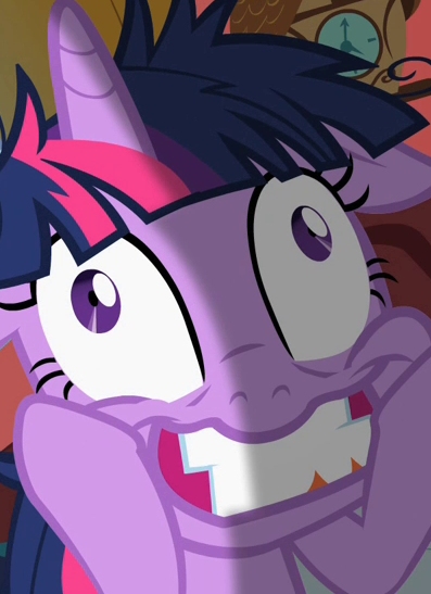 "You do, Buggie?!" Twilight moved her hoof off her cheek and flew right in front of my face, looked me in the eyes, with that friendly yet creepy smile, and her left eye twitched again. "What is it? What is it? Ask me anything, anything at all!"