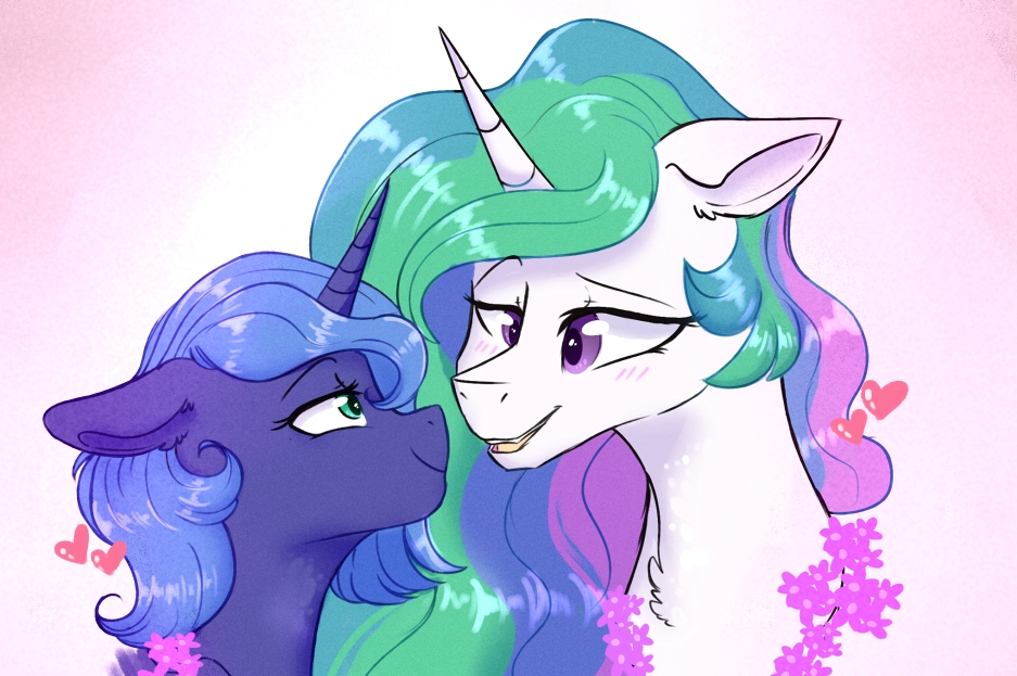 “Get behind my ear, you know how I love that,” Luna breathed; Celestia complied, her lips brushing her sister’s cheek before planting themselves in the crook behind her ear, teasing away strands of her ethereal mane so she could gently nibble there.