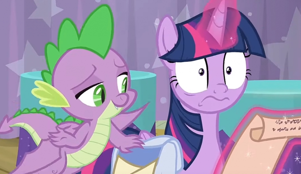 If there was one person in all of Equestria who knew Twilight's infamous moments of insanity through and through, it was Spike. In fact, so used to these flashes of madness is he that the young dragon has managed to come up with a handy-dandy response to them, much to Twilight's surprise and slight annoyance.