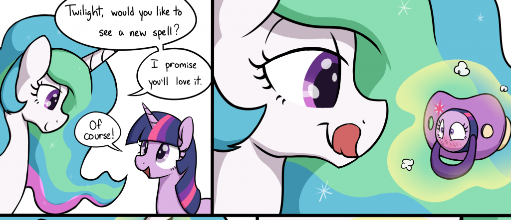 Twilight just can't get a break. While staying over at Canterlot Castle one evening, Celestia asks Twilight to help her with a spell. Twilight soon regrets agreeing to help.