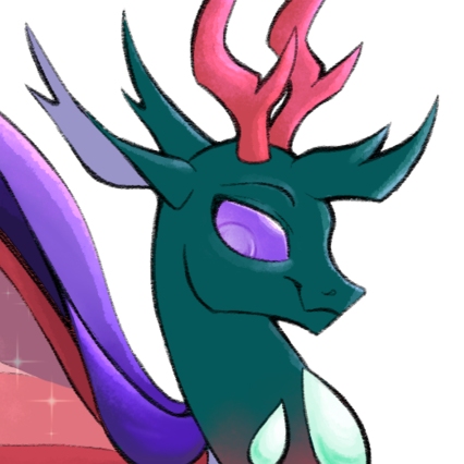 Whatever it was, it was a hell of a lot larger than Ocellus, although there were a few similarities. A dark, nearly black, cyan hide covered most of its frame. Its torso was shelled in a pigeon blue carapace, while what looked deep purple armor sat on its back. Lastly, and most interestingly, a pair of amaranth antlers, between which sat a horn, rested on its head.