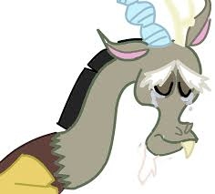 “Oh, very well.” Discord groaned snapping his talon to make his face appear back in its proper place and removing the cane and top hat from sight.