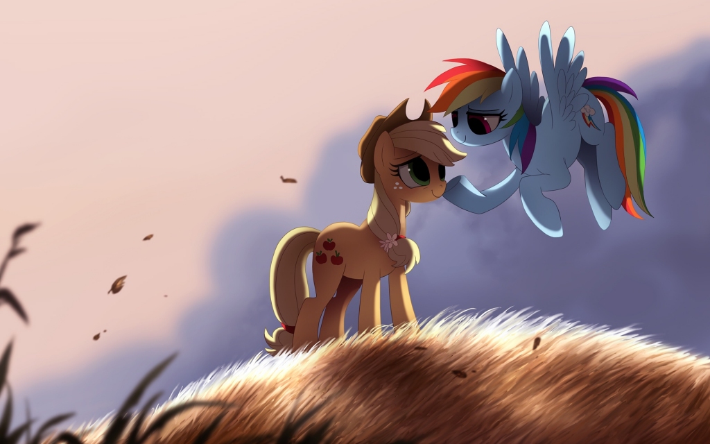 Applejack fiddled with the ponytail her mane had almost always been tied into, looking at how majestic Rainbow looked in the fading light of the sunset. But even Rainbow had gotten a light tint on her cheeks from the rather direct signs of affection.