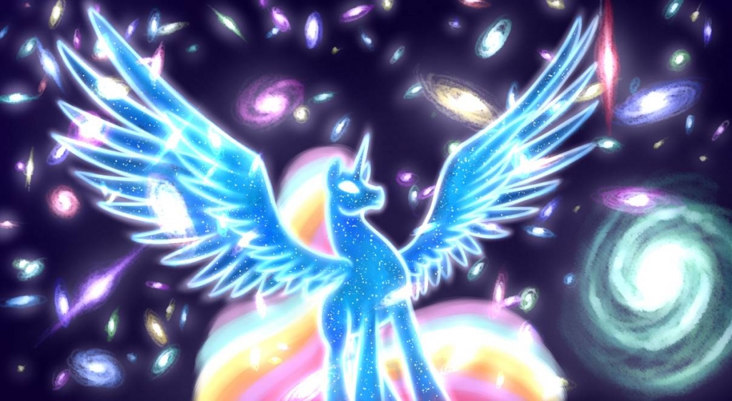 When the world was still young and the great crystal roots of Harmonia still were seen wrapping around the world, the Alicorns were fewer and among the planet's only life. Ponies crossed no plains and foraged in no forests, for no ponies tread the world and their ancestors were still unrefined in the arcane, looked to herds for safety, and hardly bigger than dogs. Horns more akin to nubs were the most revered things in the hearts of these creatures, and the Alicorns looked over these creatures sparingly, with patience to see if they might grow into something proud beyond curious, runty little animals with more than stubby wings, promise, and potential. And that potential for more — for languages, art, and advancements like those of the Alicorns — shone like the gleam developing in the coats of the northernmost would-be ponies.