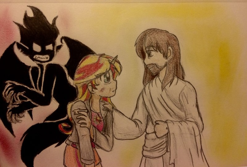As Nicodemus left, Jesus looked at Sunset Shimmer.