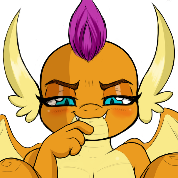 “Anon, I just realized something…” Smolder hummed, drawing the man’s attention upward. “Since you haven’t had breakfast,” she continued, running a clawed digit down her abdomen, “how about you help yourself to some breakfast.” As she concluded, her fingers wandered to over her sex.