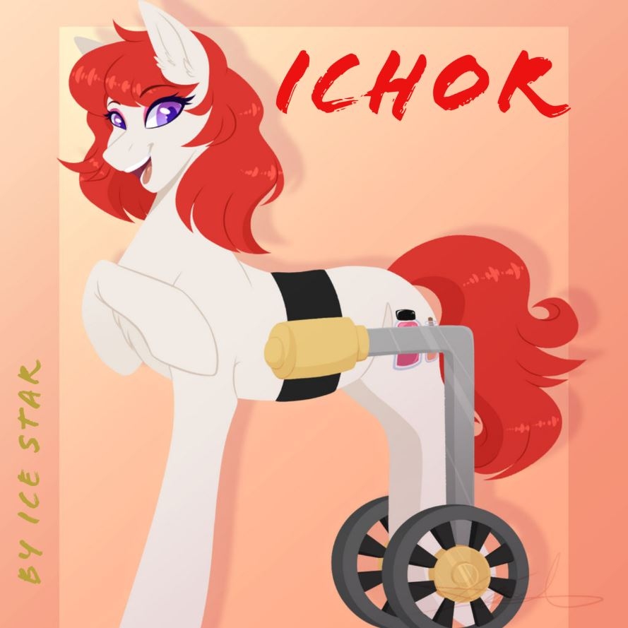 She smiled kindly at him, batting her eyelashes so they framed her red-glowing irises just so. The mare tugged her elaborate gold-threaded shawl laden with noisy trinkets closer around her withers, so anything below her high-necked ruffles was hidden. The mare rested a hoof over her throat, where something might have lain under the fabric she bunched up and held with her hoof in the flawed imitation of sophistication.