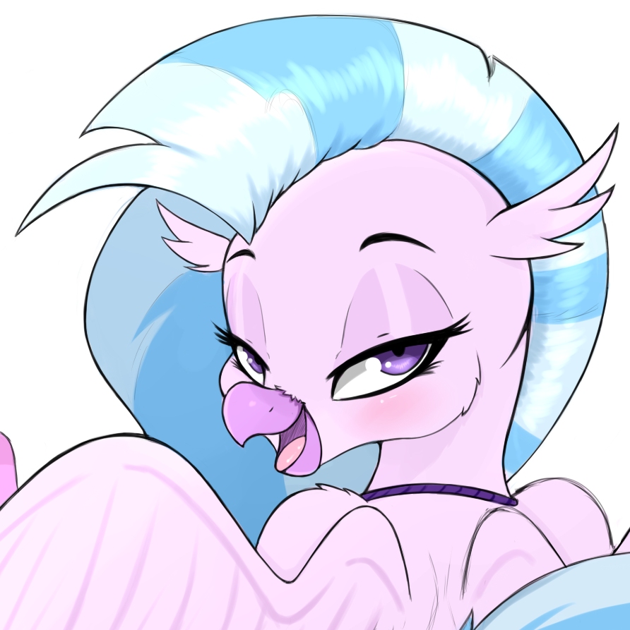 Placing a claw on his shoulder, pushing Anon to his back, Silverstream pressed herself against the man. The warmth of his broad chest, the heat of his breath, and his strong grip caused a shiver to run up her spine. Before she knew it, she was lightly moaning into his mouth and tenderly caressing the side of his face.