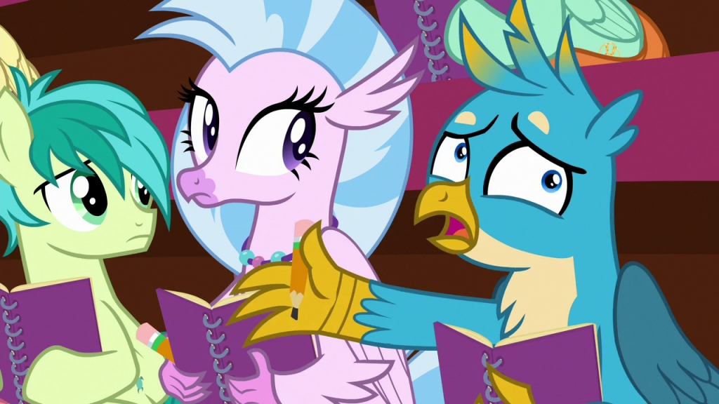 "Ehh, it's fine. I guess it's not too much trouble," Gallus said, "I haven't really been with a girl in a while either, so I wouldn't mind a refresher. How about you Sandbar? Up for a quick study group?"