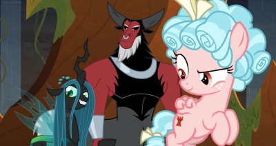 "And you expect me to simply allow myself to be degraded, dismembered, and violated? I don't think so," Chrysalis responded. To be honest, it wasn't the worst idea the crazy pony had ever come up with, but Chrysalis had seen some of the things Tirek had done to Cozy Glow in the past and wasn't too keen on going through all that just for a meal. "Perhaps I would consider it if you were to sweeten the deal though," she said as she eyed Cozy Glow.