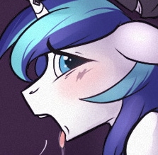 “Yes, my Princess,” Shining answered fearfully. He could feel Luna’s spit slide down his face, reaching his lips. He licked it up with his tongue by reflex, unwittingly tasting the bitter liquid.