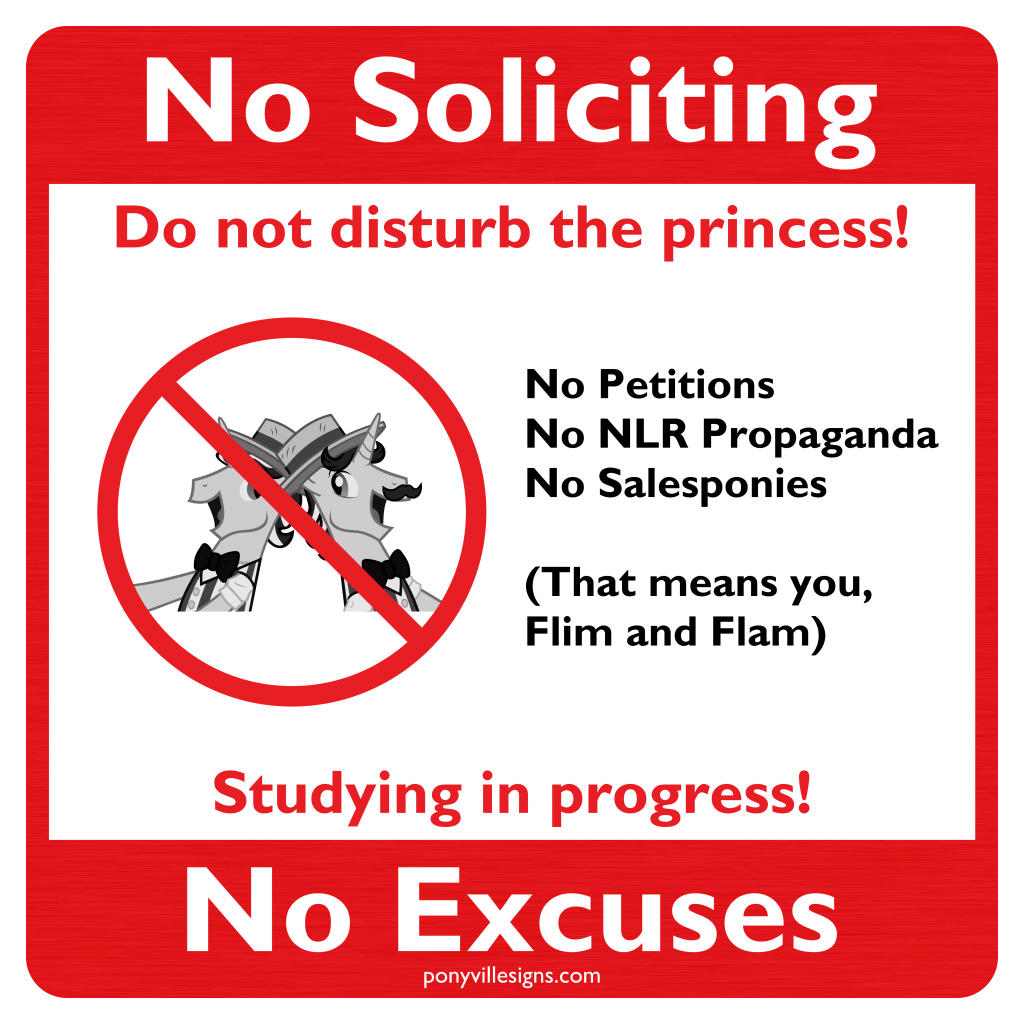 Flim and Flam show up at Twilight’s castle and try to sell her a new vacuum cleaner. Unfortunately for them, the busy mare has no patience for their aggressive marketing tactics.
