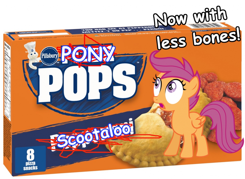 Once upon a time, Pony was Pizza Pop. You could go to the store and buy a box of pepperoni and bacon Scootaloos. So I did. I got a big case because they were good and I didn't know how to cook anything else. And they went good with energy drinks. Despite the looks of obvious disgust from the cashier and everyone I passed on the way home, I knew nothing was going to stop me from savoring these clearly sapient pizza ponies. I wiped a fat dollop of sweat from my flopping brow, mouth watering at the mere prospect.