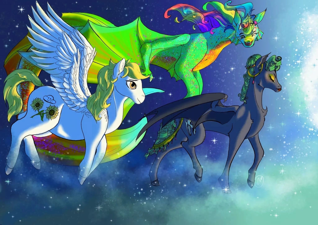 Back when I was really little, right after the ETS pandemic, the alicorn and Dreamwarden Luna came to Earth. Luna looked around and was scared; there were all these new night ponies that didn't understand how much they could hurt others dreamwalking, and there was a big evil thing slowly forming on its own in the dream realm that was going to hurt everyone. So Luna decided to make six ponies the new Dreamwardens of this realm. They would make sure the night ponies behaved, and their being there made the big evil thing go away.