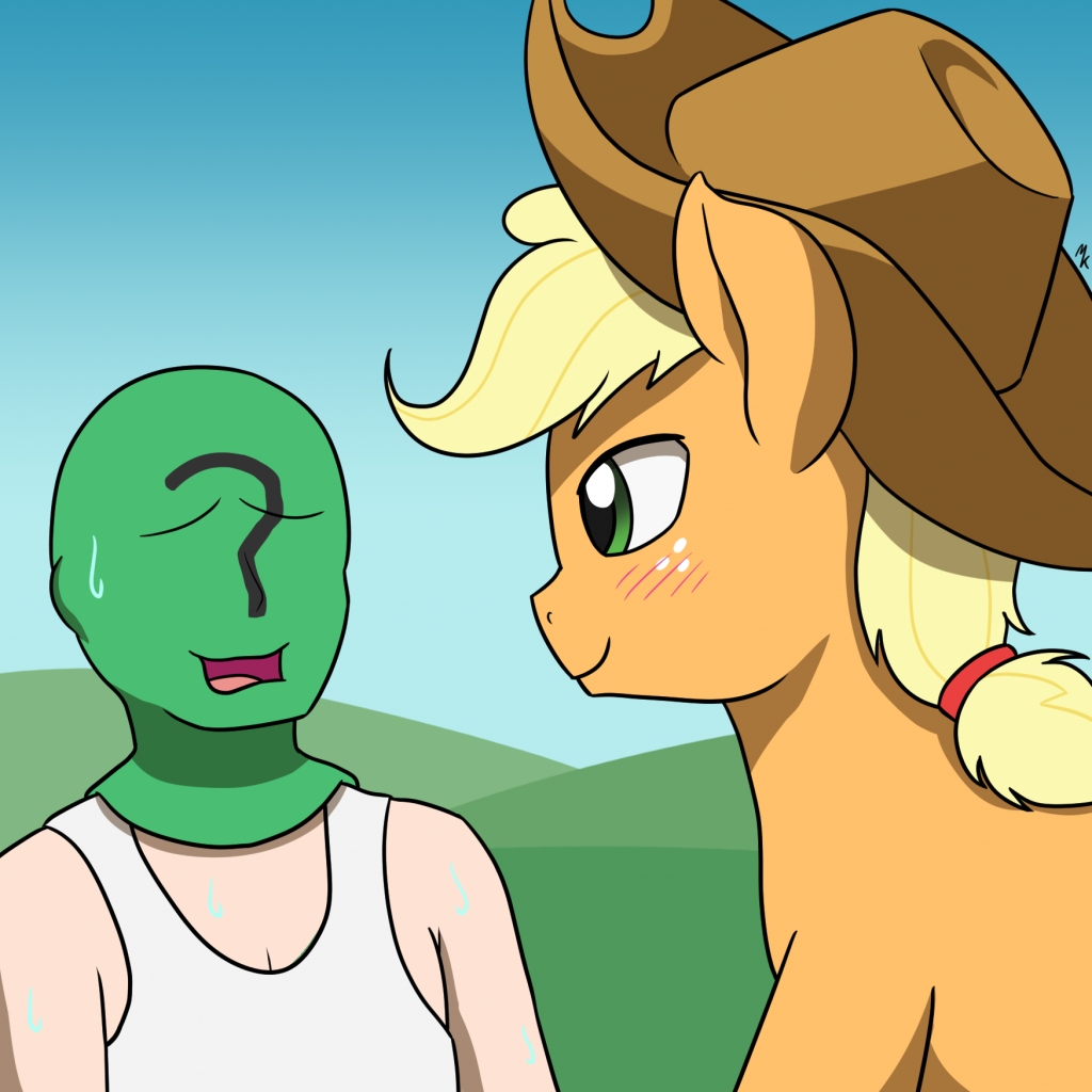 Ever since he’d arrived in Equestria, having inexplicably found himself just outside the town of Ponyville, Anon had grown closer and closer to the hard-working earth pony. Besides his strangely alluring aesthetic and amiable demeanor, he found Apple Brandy’s southern accent was positively adorable. Friendly, helpful, and just a downright nice pony, the Element of Honesty had been one of the few who didn’t view him as a weird bipedal alien.