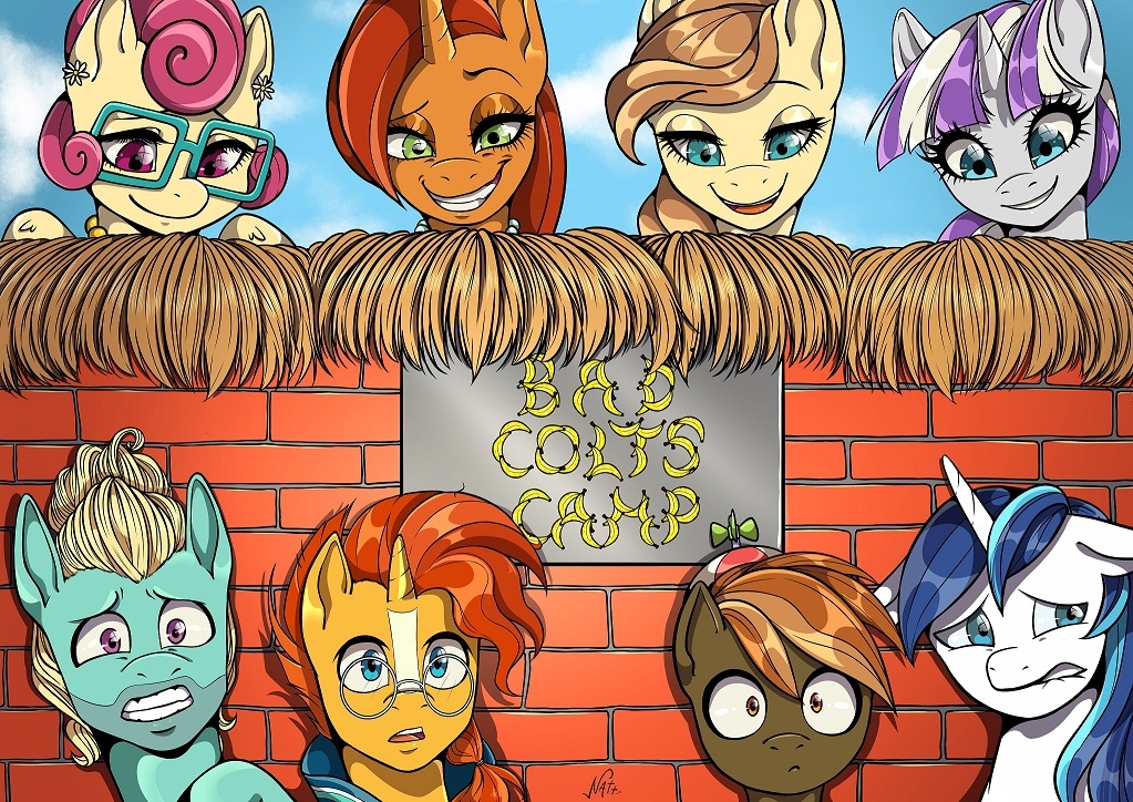 "Gentlecolts, you are here because your mothers feel that there is something lacking in your relationship. Over the next week, this seminar will work on strengthening that bond, with our patent-pending Second Start program!"