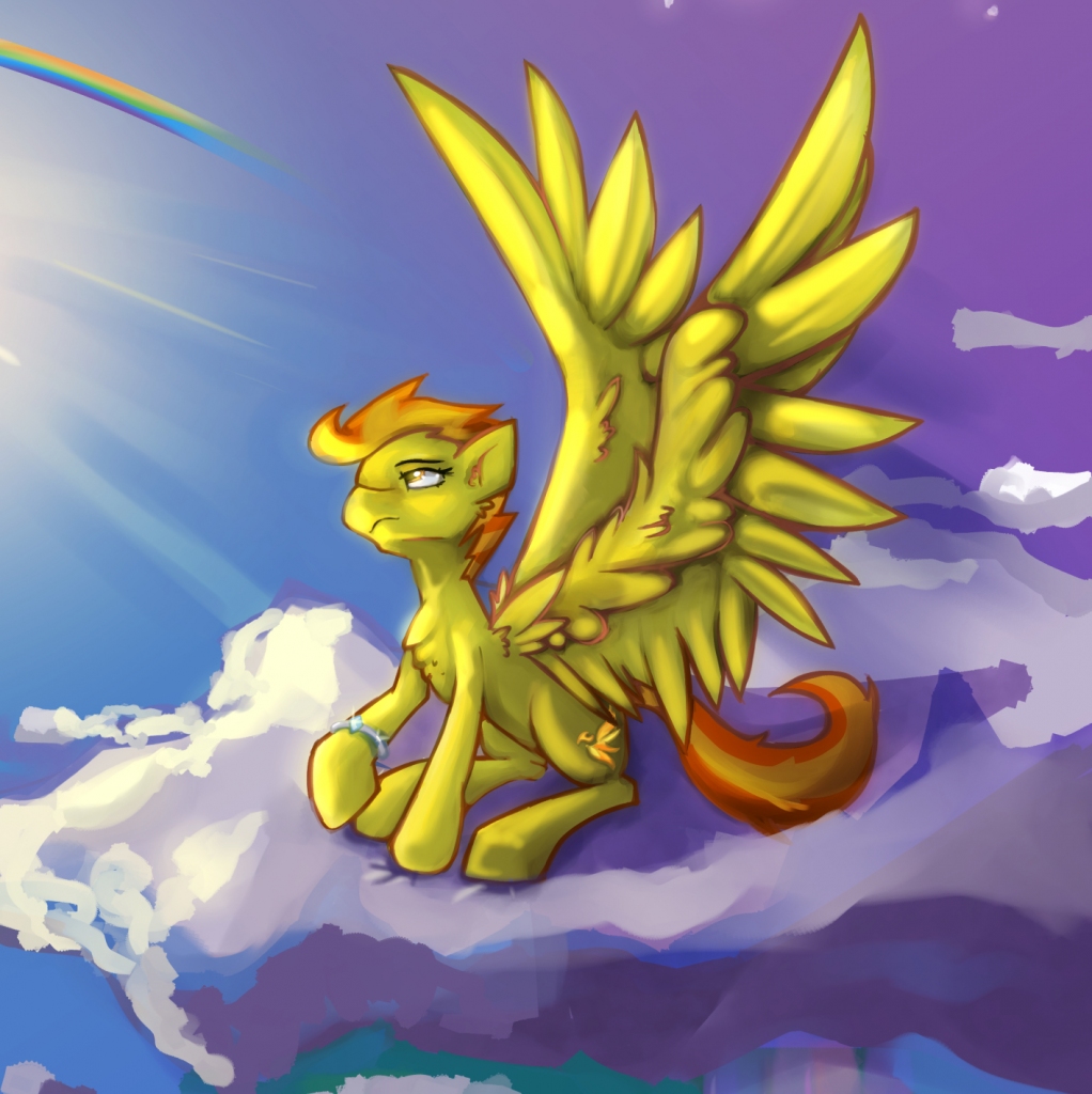 “Hey there,” Spitfire said. “I recognise you. You wouldn’t happen to have been sent here by Rainbow Dash, would you?”