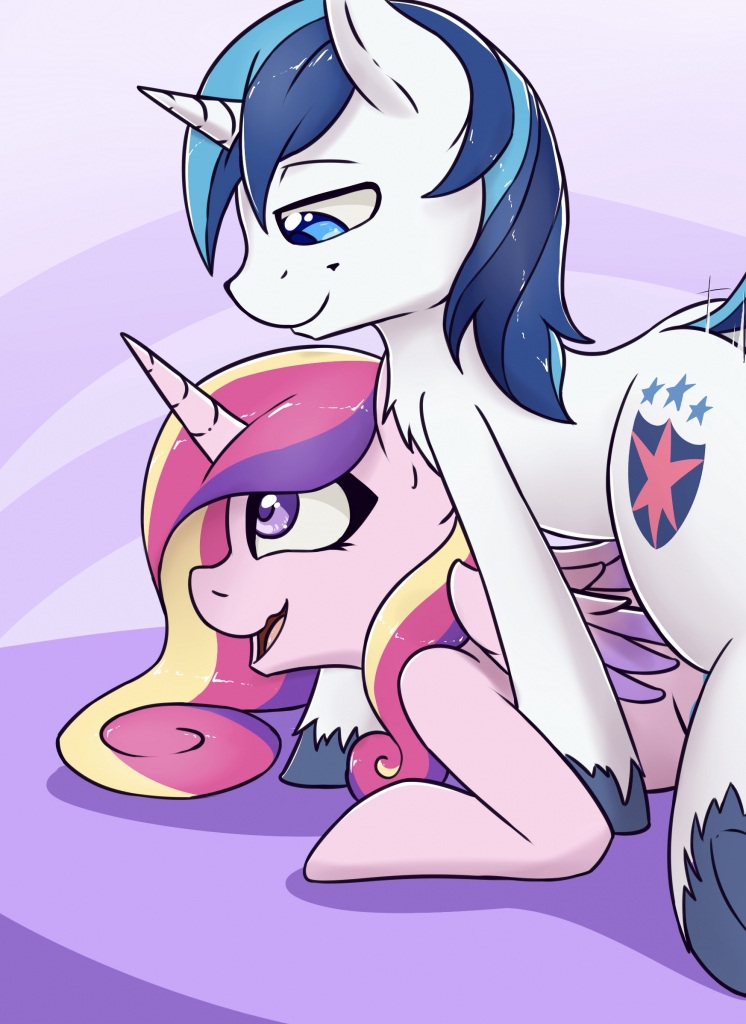 Shining's eyes widened and Cadance's eyes shifted down, beneath him, to his poner.