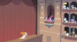 But just in case his brilliance failed to penetrate the locals’ skins (“Hardly surprising,” the snob scoffed, “the simpletons”), the snob invited theater critics from Canterlot, to see the genius of his play’s plot. For they would undoubtedly understand, and proclaim him the greatest playwright in the land! Those foals who had forced him out of the show biz, now they would see and vengeance would be his! Then the snob found a stage and a crew – it wasn’t much, but for now it would do.