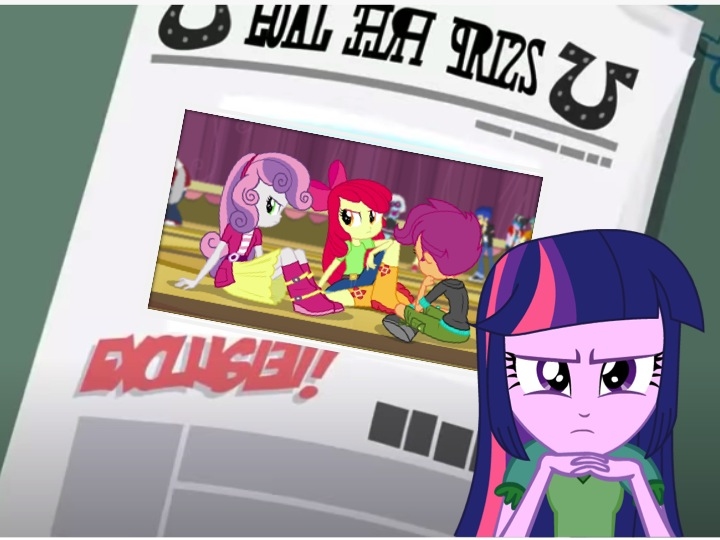“Its NOT Sunset Shimmer” interrupted Twilight making everyone gasp. “You see, this whole situation already happened in my world, and outside the different author name I cant tell any differences” her gaze fell on Sweetie Belle who gulped “which means the responsible must be also the same person”