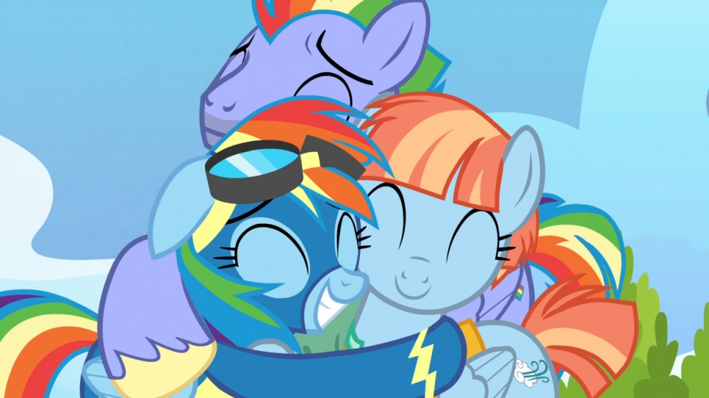 Bow, Rainbow, and Windy stared back at the young filly, equally frozen. Rainbow recovered first, a smile breaking across her cum-streaked face as she looked her surrogate younger sister straight in the eyes.