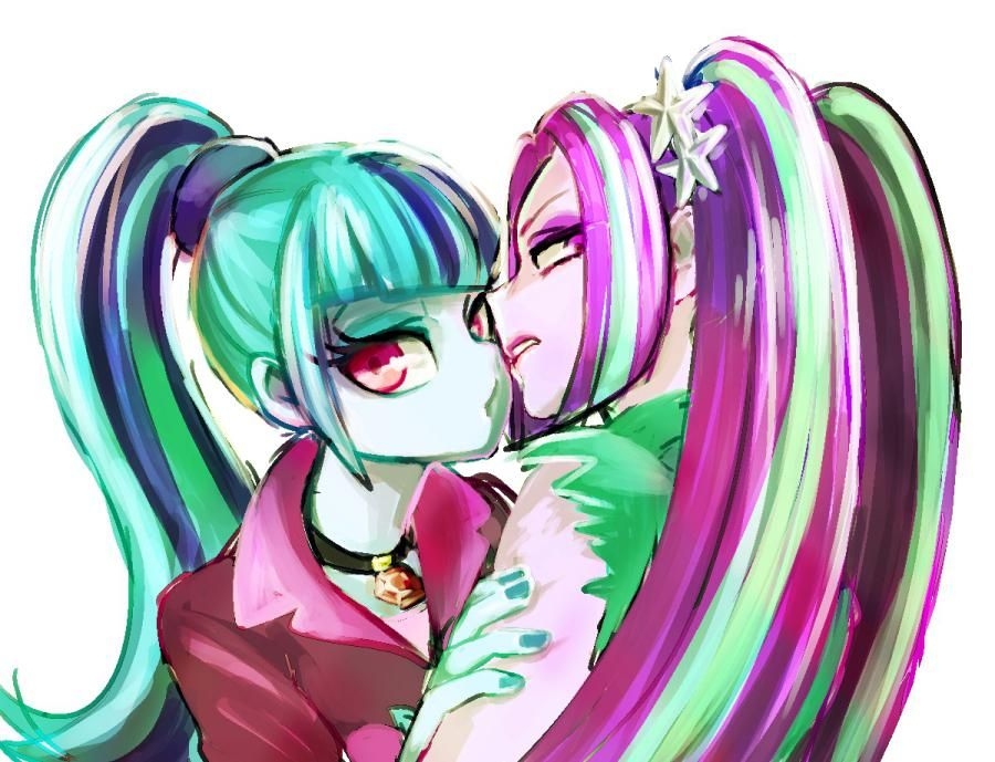 The baby siren wiggled and helped more her body, so that it would be easier for her skirt and panties to be removed. When they were, she'd spread her legs and allow her sister to get between them; so that she could get furthermore into place. "Mmmaan... fuck... I can feel your hard dick against my pussy, Aria." Sonata chewed upon her lip.